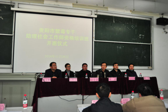11月26日上午,由我院承办的首届贵阳市禁毒专干助理社会工作师资格培训班开班仪式在贵州师范大学宝山校区文科楼901室隆重举行。