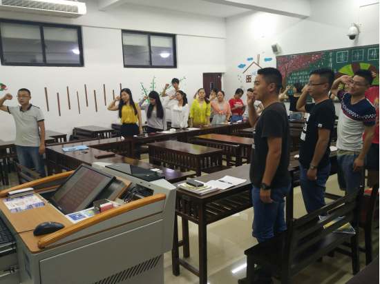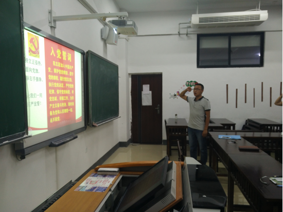 然后,进行了第二个环节全体党员重温入党誓词,由副书记白江波领誓,全体党员宣誓,庄重而神圣的重温誓词使活动的气氛达到了高潮。