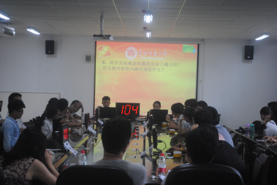 为隆重庆祝中国共产党建党95周年和纪念红军长征胜利80周年,讴歌党的光辉历程和丰功伟绩,继承和弘扬红军长征精神,增强党组织基层活力,激发广大学生的爱国爱党热情,为加快建设“四个全面”、实现中华民族的伟大复兴凝心聚力。6月23日下午两点,由历史与政治学院团委主办的“庆祝建党95周年暨红军长征胜利80周年主题知识竞答活动”在学院楼二楼会议室顺利举行。本次竞赛共有17个队伍参加,其中16个为本科生按班级精选三人组成,1个为研究生代表队。由学院教师刘邕、卢纲君、杜进文担任评委。