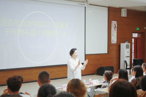 金风送爽,秋兰飘香。为了使新生进一步了解学校及学院有关情况,尽快适应新的生活、学习和工作环境及方式做好准备,9月2日至3日,历史与政治学院2017级新生开学典礼暨入学教育大会在花溪校区GJ6201教室顺利进行。学院党委书记杨芳、院长阳黔花、副书记廖光珍、副院长蒲文彬及各系系主任等领导和老师出席,2017级全体新生参加,会议由学院团委负责人杜进文老师主持。