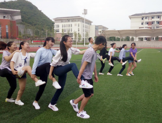 本次活动集运动锻炼与智力游戏相结合,整个活动分成几个环节,训练方式皆为一个个活泼有趣的小游戏,做到了方式多样,内容充实不单调。同学们全身心地投入到活动当中,使此次活动欢乐多彩,寓教于乐。活动中同学们时而分成两组相互竞争,时而采取个人赛各显神通,张扬个性,展现青春;团结协作,互帮互助。足球场上空的阳光正酣,但我们不惧烈日,让蓝天白云见证我们激情洋溢的青春,团队合作的默契。