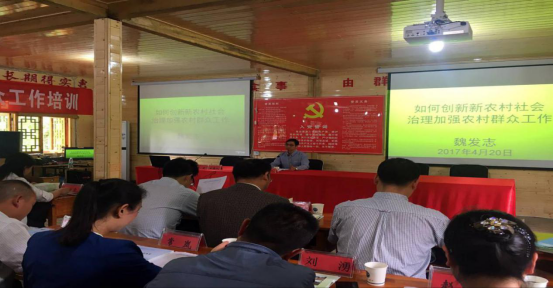 随后,由市委群工委常务副书记魏发志作《如何创新农村社会治理,加强农村群众工作》专题讲解,魏发志指出,农村社会成员弱化,社会组织弱、散,文化难以融合,基层组织依附思维存在,社会成员在认识上存在偏差,难以协同共治、意见达成一致;其次,来自经济、物力的治理资源短缺和主流文化的缺失,使得新农村社会治理难度加大。魏发志强调,要解决以上问题,必须加强老百姓对农村社区文化的认同感,抓好联系服务群众工作,整合资源,利用大数据推进精细化治理,强化依法治理。最后,魏发志指出应在基础设施、公共服务、产业发展、精准扶贫、社会治理五项工作中推进新农村社会治理,加强农村群众工作建设。