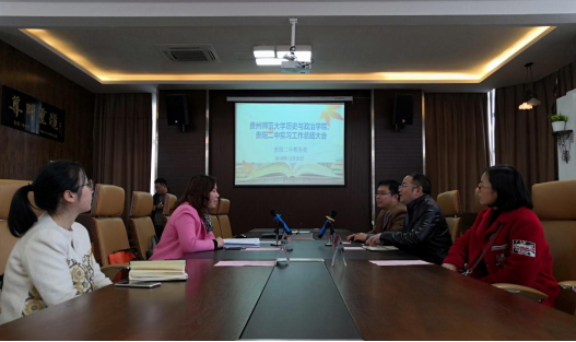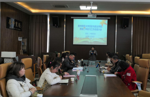 为深入了解学生实习情况,关注学生实习成长,进一步促进高校与中学的交流与合作,12月20,学院副院长蒲文彬、历史系主任苏聪、王艳玲老师等前往贵阳市第二中学开展2019届实习工作总结座谈。贵阳二中副校长张霞、教务处主任谢基祥与实习指导老师出席会议。