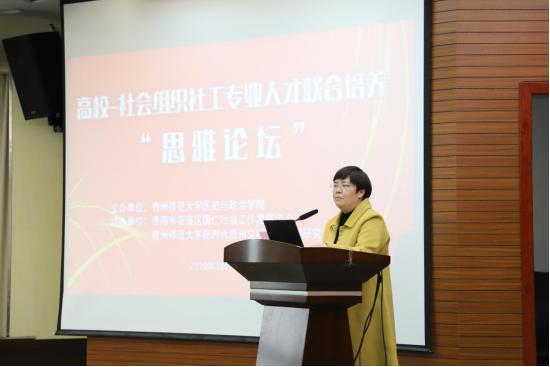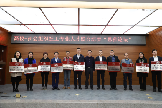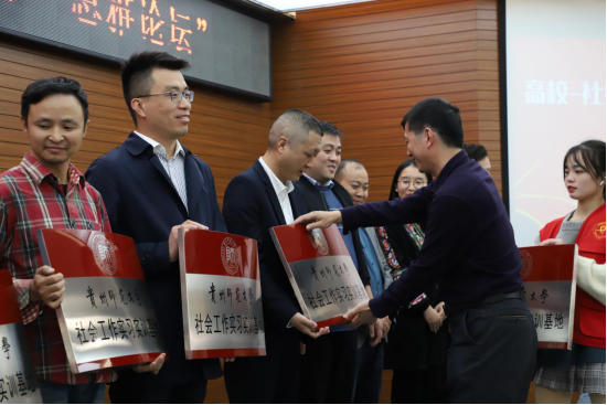 为加强高校和社会组织合作,促进社工专业人才培养和专业发展,我院于10月26号下午在花溪校区会议中心举办高校—社会组织社工专业人才联合培养“思雅论坛”。本次论坛由我院主办,贵阳市花溪区国仁社会工作发展中心和贵州师范大学新时代贵州文明实践协同研究中心协办。来自省内8所高校社工本科专业和专硕点负责人及专任教师,11家省内知名社会组织负责人及骨干,以及我院社工专业毕业生代表、在校本科生和研究生等近200人参会。围绕论坛总主题“高校-社会组织社工专业人才联合培养”,与会嘉宾就“校社联合的社工专业实习实践创新”“校社联合的社工人才供需对接创新”以及“校社联合的社工师资队伍建设创新”三大关乎社工专业发展和学科建设的重大议题进行了深入交流,为我院社工专业人才培养模式改革和一流专业建设提供了宝贵实践经验和建设思路。论坛期间,我院还为11家共建社会工作实习实训基地的社会组织进行了授牌。