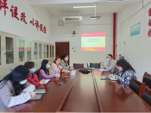 2022年11月28日14点,历史与政治学院在学院会议室召开疫情防控工作会议,本次会议由学院党委副书记王自翔主持,学院党委组织员(正处级)、院党委副书记(主持工作)帅永平,全体辅导员参会。