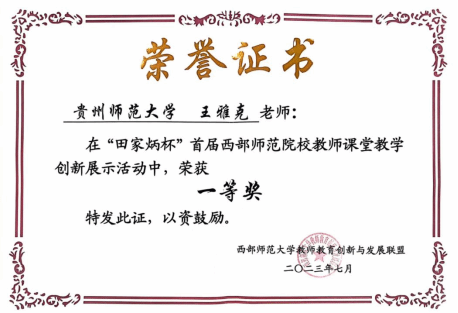 2023年7月24日至26日,由田家炳基金会支持、陕西师范大学主办的西部师范大学教师教育创新与发展联盟年会暨教师教育高质量发展论坛、“田家炳杯”首届西部师范院校教师课堂教学创新展示活动决赛在陕西西安举行。来自陕西师范大学、四川师范大学、云南师范大学、重庆师范大学、河南师范大学、贵州师范大学、海南师范大学、新疆师范大学、青海师范大学、内蒙古师范大学等高校校领导、教研部门负责人、学科教研专家百余位共聚一堂,围绕西部师范院校的师范教育高质量发展、高校课堂教学创新进行了热烈讨论。同时,经过两轮选拔,在四百余位一线教师中脱颖而出的七十五位教师按照理工科、文科、术科三大类别进行了现场课堂教学展示。展示活动分为说课、讲课和答辩三个环节。我院历史学系王雅克老师以“郑和下西洋的科技水平”为主题进行了十五分钟的现场教学,获得在场资深评委和陕师大师生的一致好评,由此荣获本次课堂教学创新展示活动的一等奖。