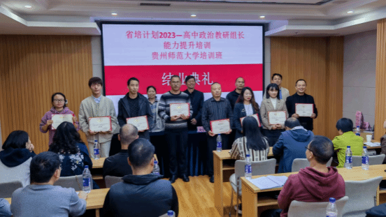 本次培训由贵州师范大学历史与政治学院承办,历史与政治学院结合以往省培的经验和现阶段的新要求,结合高中政治教研组长的实际,科学设置培训目标,精心制定培训方案。培训内容紧紧围绕基础教育课题申报、新教材、新课标、新高考、思政一体化等相关主题进行专题讲座、主题研讨、优质课听评课等,助力学员开阔视野,夯实专业基础,提升教学、科研及管理能力,为推进高中思想政治课高质量发展、培养时代新人奉献力量。