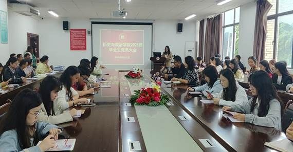 为了深化毕业生党员党性教育,做好离校前党员管理工作,引导毕业生党员坚定理想信念、牢记党的宗旨,强化党员意识,增强组织纪律观念。2025年5月27日,历史与政治学院在学院大会议室召开了2025届毕业生党员大会。学院党委副书记(主持工作)王勃、党委副书记饶蕾、党建办任雨欣同志,全体毕业生党员参加会议,本次会议由任雨欣主持。