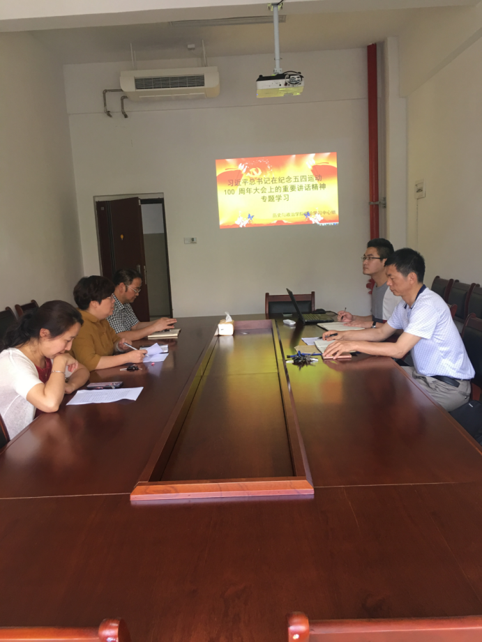 6月20日上午,历史与政治学院学院理论学习中心组举行专题学习会,深入学习习近平总书记在纪念五四运动100周年大会上的重要讲话精神。学院党委书记廖光珍同志主持学习。