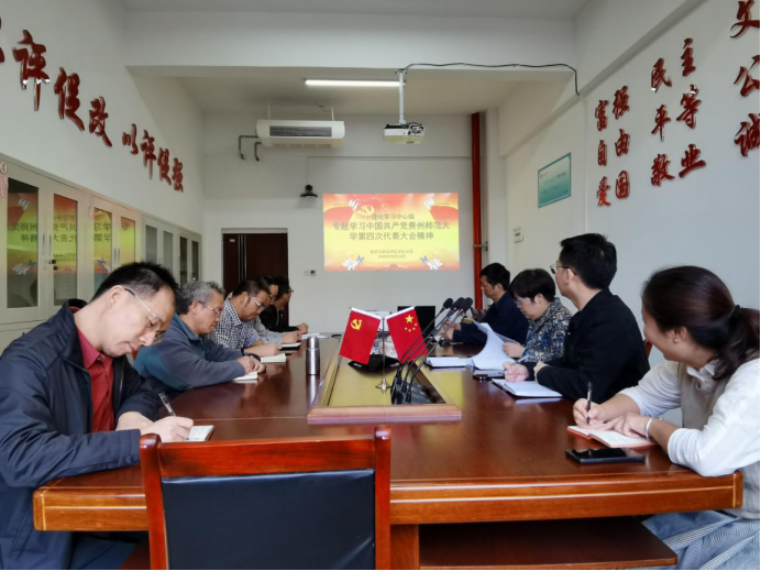 历史与政治学院基层党委于9月23日上午10点30分开展了理论学习中心组学习,专题学习中国共产党贵州师范大学第四次代表大会会议精神。会议由院党委书记廖光珍主持。