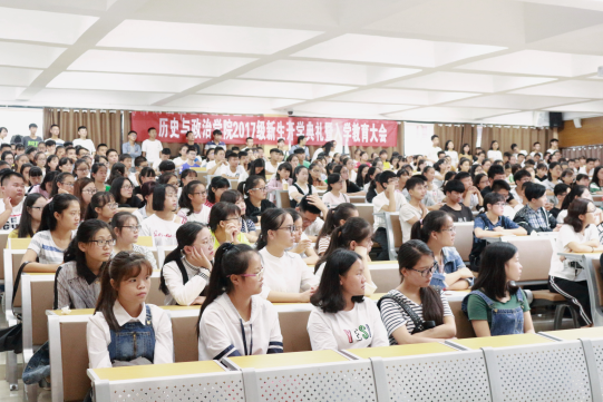 金风送爽,秋兰飘香。为了使新生进一步了解学校及学院有关情况,尽快适应新的生活、学习和工作环境及方式做好准备,9月2日至3日,历史与政治学院2017级新生开学典礼暨入学教育大会在花溪校区GJ6201教室顺利进行。学院党委书记杨芳、院长阳黔花、副书记廖光珍、副院长蒲文彬及各系系主任等领导和老师出席,2017级全体新生参加,会议由学院团委负责人杜进文老师主持。