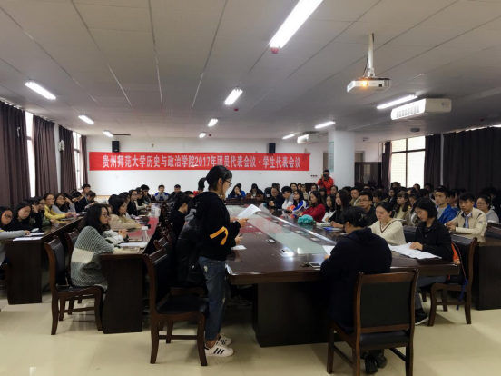 为贯彻落实《关于召开共青团贵州师范大学第十九次代表大会、贵州师范大学第二十次学生代表大会的通知》的精神和要求,4月21日,历史与政治学院团员代表会议、学生代表会议于学院楼二楼大会议室隆重召开。会议由学院党委书记杨芳主持,学院团员代表102人、学生代表113人参加。