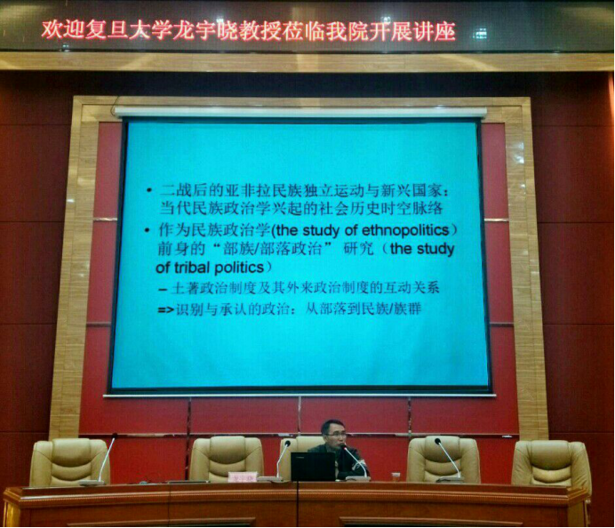 12月7日下午,历史与政治学院博学讲堂系列讲座第二十三讲在花溪校区GJ6101举行,复旦大学民族研究中心特聘研究员龙宇晓教授为师生解析“近十年来民族政治学研究国际前沿动向及启示”。讲座由历史与政治学院副院长陈华森教授主持,相关专业师生出席。