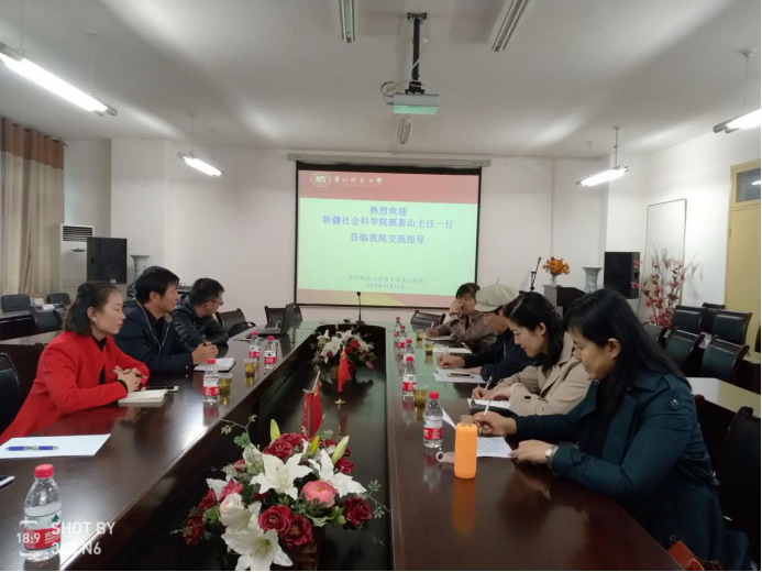 10月18日下午新疆社会科学院新疆中国特色社会主义理论体系研究中心郭泰山主任携调研组一行五人到我院进行交流考察,我院副院长陈华森及教师李红军、罗竖元、常岚参加了此次交流座谈。