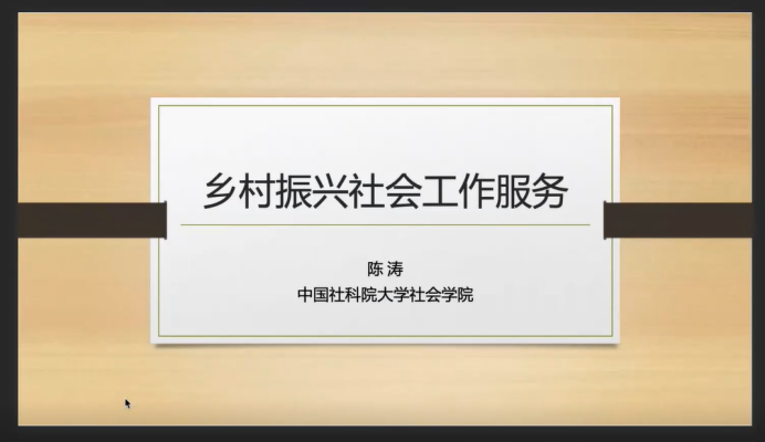 在讲座中,陈涛教授首先谈到“乡村振兴社会工作服务”的背景。随后,陈老师从乡村振兴需不需要社会工作服务,社会工作服务乡村振兴可以做哪些事,“乡村振兴社会工作服务”与一般的“农村社会工作服务”有何不同,社会工作如何做才能更好地助力乡村振兴等几个方面进行了系统而深入的讲述。此外,陈老师还就如何针对不同类型的乡村开展相应的乡村振兴社会工作服务以及对社会工作者的要求阐述了自己的观点。最后,张和清教授作为对话嘉宾回应了陈涛教授提出的“乡村振兴社会工作服务”概念,并分享了广东“双百工程”的发展历程和实务经验。张老师就能否用“乡村振兴社会工作服务”代替“农村社会工作服务”,我国农村社会工作如何去推动“五位一体”的社区可持续发展,如何推动农村社区生计发展,解决相对贫困等问题与陈涛教授和参会人员进行了深入的交流。张老师强调社会工作应该特别关注维护底线的公平和正义,推动发展型社会工作的开展。