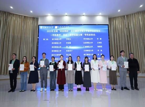 2025年12月5日至7日,2025年全国“田家炳杯”全日制教育硕士专业学位研究生(学科教学·思政)教学技能大赛决赛暨人才培养高峰论坛在江西师范大学顺利举行。贵州师范大学历史与政治学院学科教学(思政)专业研究生积极参与、表现出色,在比赛中斩获两项奖项。其中,2024级学科(思政)硕士研究生向杨英子同学荣获全国一等奖,充分展现了出色的教学素养与综合能力,2023级学科(思政)硕士研究生林双影同学凭借优秀的教学设计能力,荣获“优秀教学设计奖”。