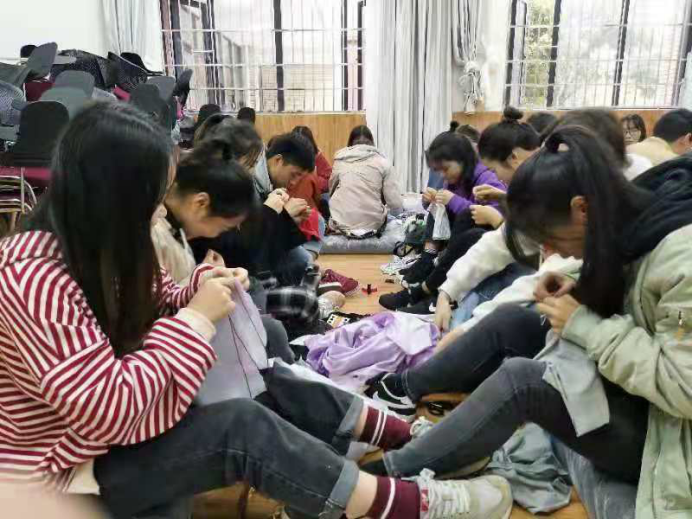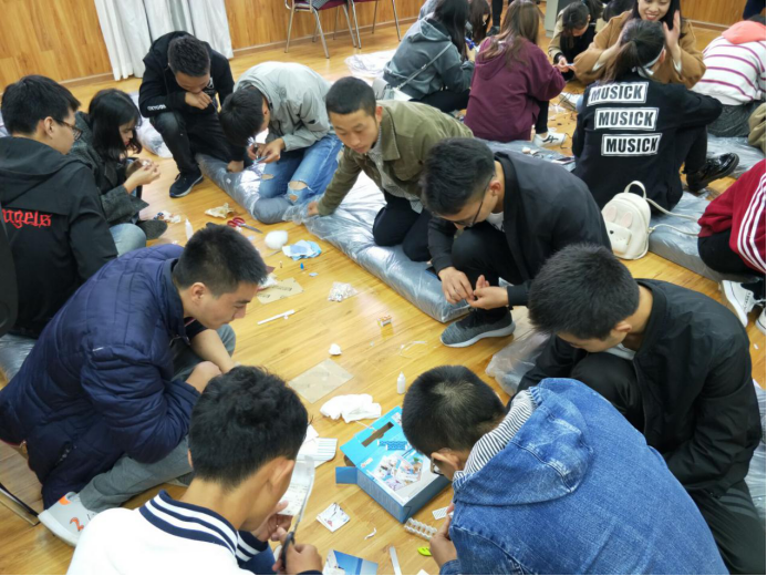 活动分为两个环节,第一个环节为制作手工鞋套,其主要目的在于旧物回收利用,制作每个同学的专属鞋套。社会工作实训中心今年9月正式投入使用,其目标是建设无尘化的文科实验室。制作手工鞋套切合社工实训室的需要,旧物利用经济环保,同时锻炼了学生的动手能力。