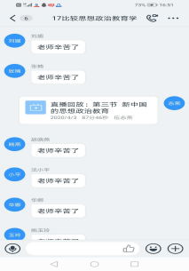 授课结束后,思想政治教育系全体教师对伍志燕教授的公开课进行了在线评课,大家一致高度评价了伍教授的授课。在随后的交流中,大家充分讨论了如何加强人才培养质量、如何建设国家一流专业建设点等内容,认为以后可以更多利用网络来开展在线教研活动,以便丰富本系教研活动的形式、提升教学质量。