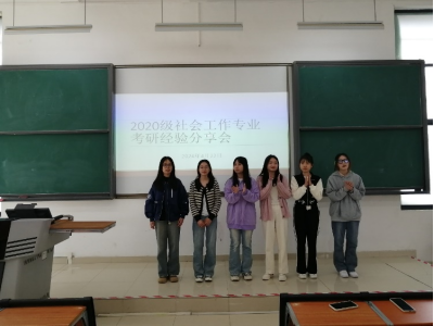 在实践教学周期间举办实习和考研经验分享会,邀请考研被录取的同学代表和应届毕业生代表分享考研和实习经验是社工系的传统。本次实践教学周,社工系共邀请六名考上研究生的20级学生面向21至23级学生分享考研心得体会。六名同学中,有考外校的,也有考本校的;有考本专业的,也有跨考其它专业的。同学们从选择学校和专业、备考过程和方法、备考资料和培训、复试准备、心理减压等多个角度毫无保留地分享各自的经验,鼓舞学弟学妹们考研的信心和勇气,也让他们了解备考方法和技巧。