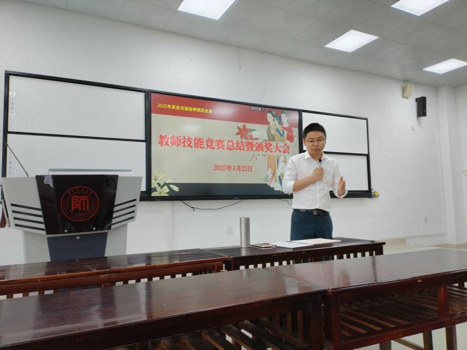 4月23日9时,2023级历史学班于GJ3417教室举行了教师技能竞赛总结暨颁奖大会,王兴锋老师担任主持人及颁奖嘉宾。